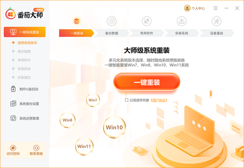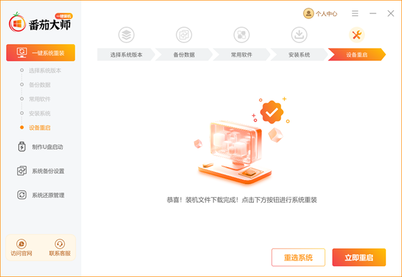 为你提供最快的下载速度,重装只需三步到位、智能完成重装,系统立即就能使用!